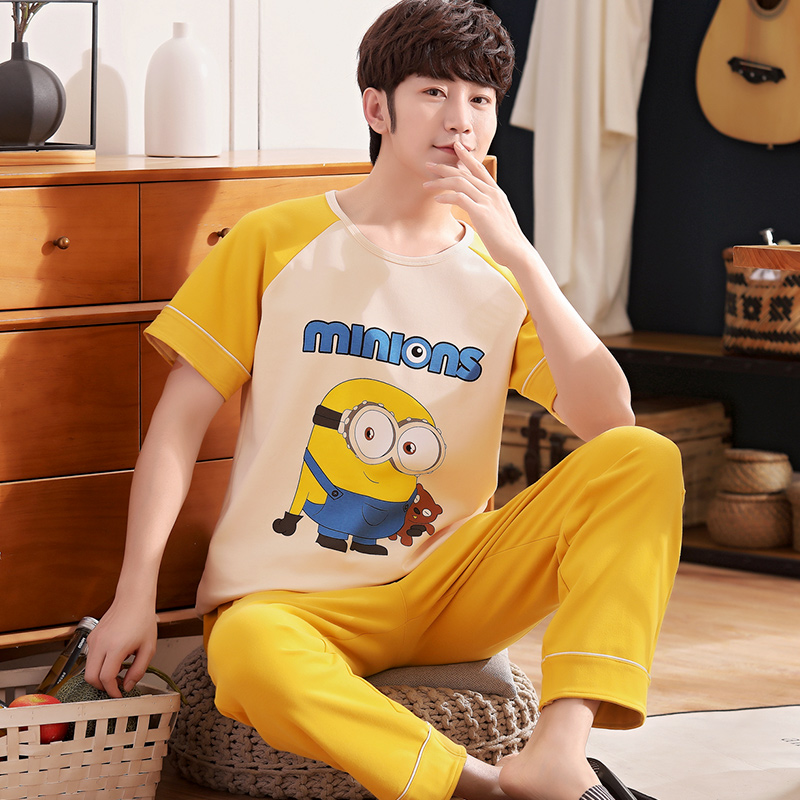 Sleepwear Men's summer Katong Cartoon Teenagers Junior High School Students Short Sleeve Long Pants Pure Cotton Home Conserved Two Style Suits headsets