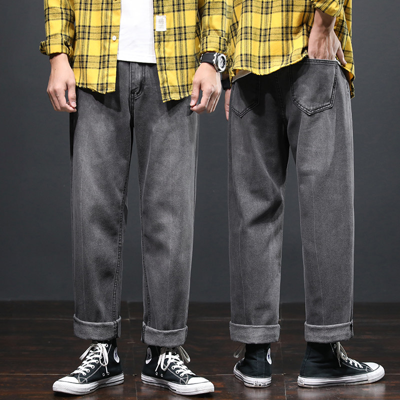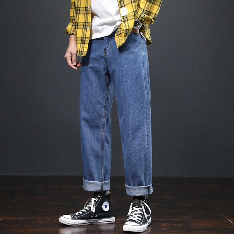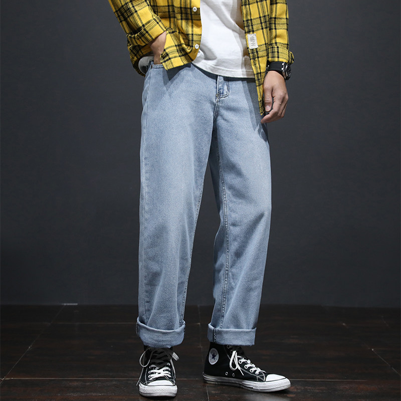 Spring and autumn 2021 New light color jeans Men's trends Tide Cards Easy straight cylinder Broad Leg Spring Tide 100 lap