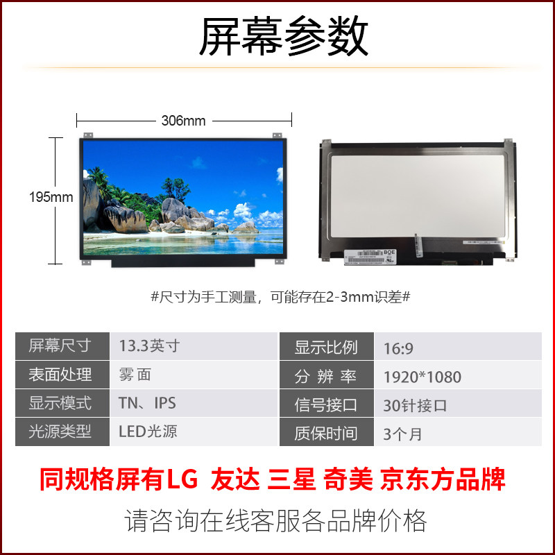 Lenovo ThinkPad 13 L380 L390 S2 High resolution IPS Screen LP133WF2 SPL1 NV133FHM