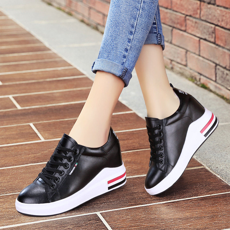 Internal heightened women's shoes 2021 new tide small white shoes women's thick bottom 8cm Joker slim leather leisure sports list