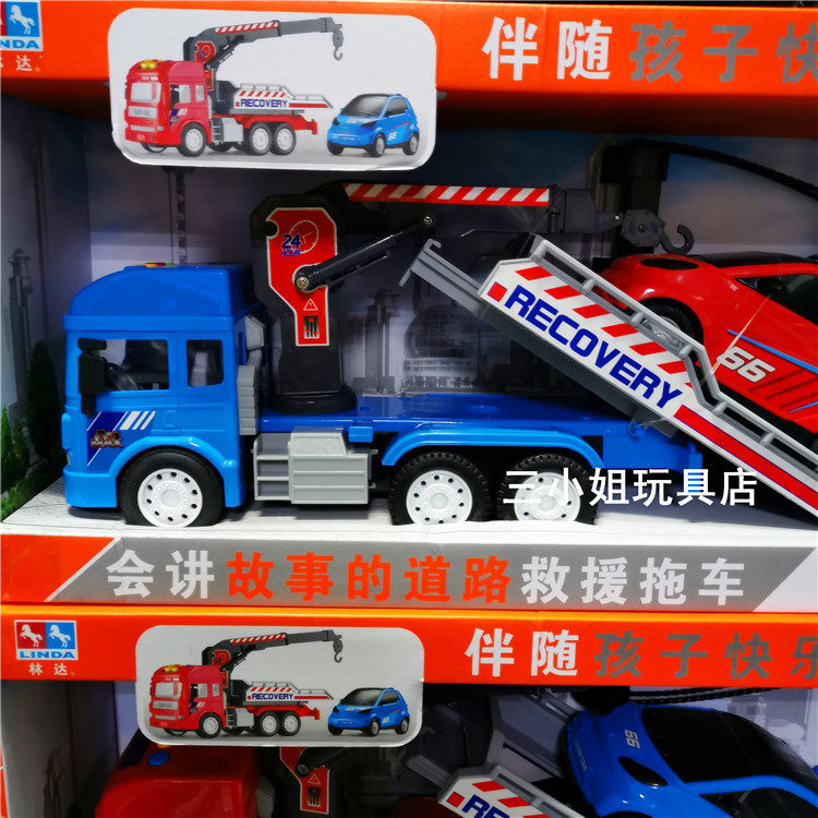 Linda will tell stories of road rescue trailers early teach authentic inertial pickup truck container transport truck boy toy