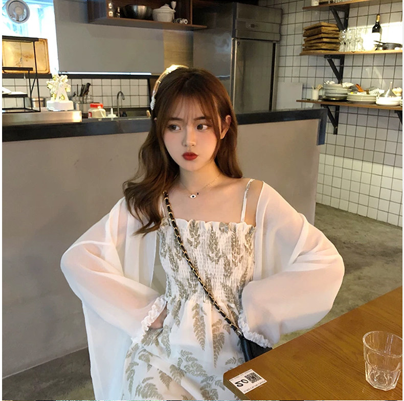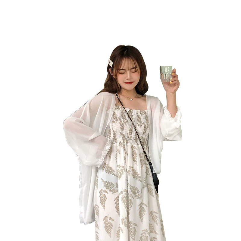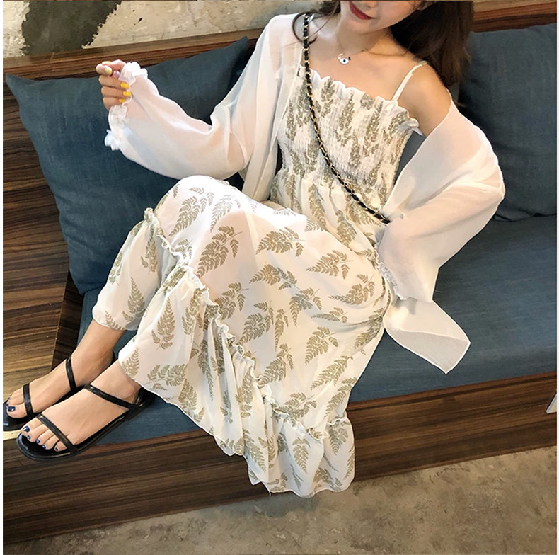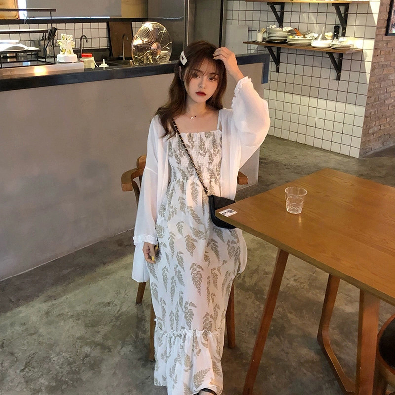 Sunscreen cardigan single piece (suspender skirt slim and thin temperament) suspender skirt single piece (Super fairy gentle wind sweet girl wear careful machine temperament light spring autumn) sunscreen cardigan sling