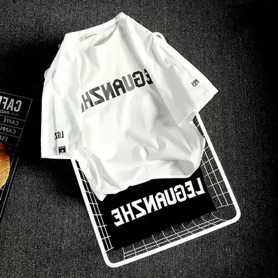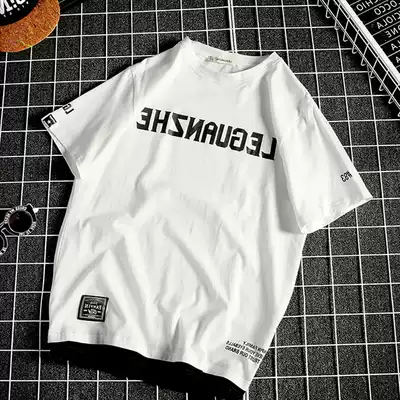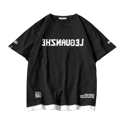 Tide brand short sleeve T-shirt men's summer Fat Man Men's fake two large size loose Korean trend personality print half sleeve