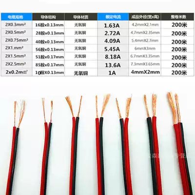 Wire household copper core parallel wire red and black wire car horn wire 1 52 core soft wire Sound Cable LED power cord