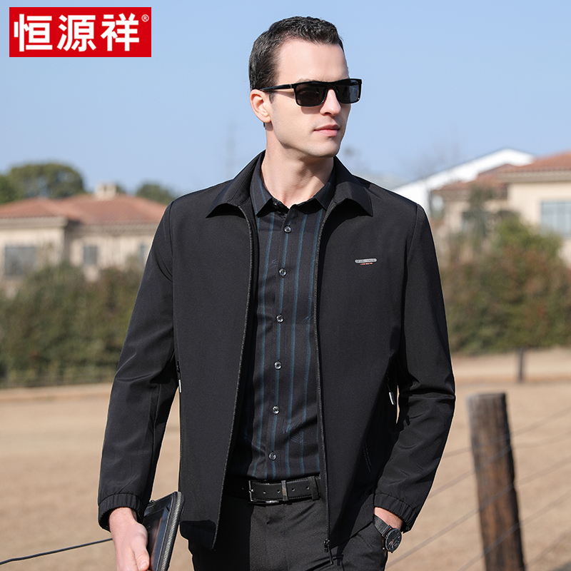 Hengyuan Xiang Coat Middle-aged Men's Turned Egg-shirt 2021 New Light Business Casual Spring Fall Jacket Man