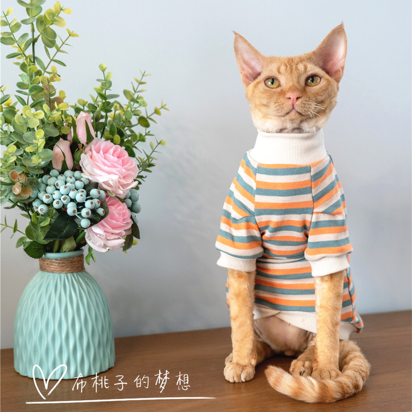 GINGERAIN German cat clothes Sphinx hairless cat cotton striped coat
