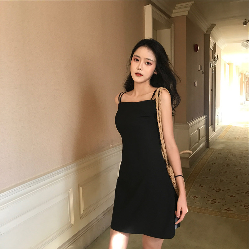 Spring and summer Hepburn bellflower temperament is thin retro strapless first love small sexy one-shoulder suspender dress