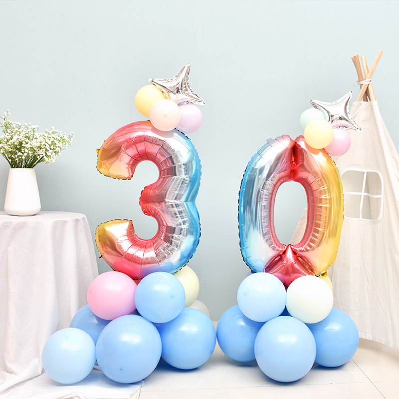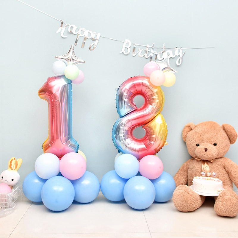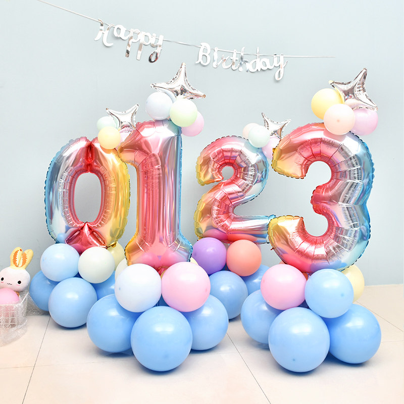 Children's birthday party baby one-year-old macaron gradient color Aurora 0-9 digital age column road guide balloon