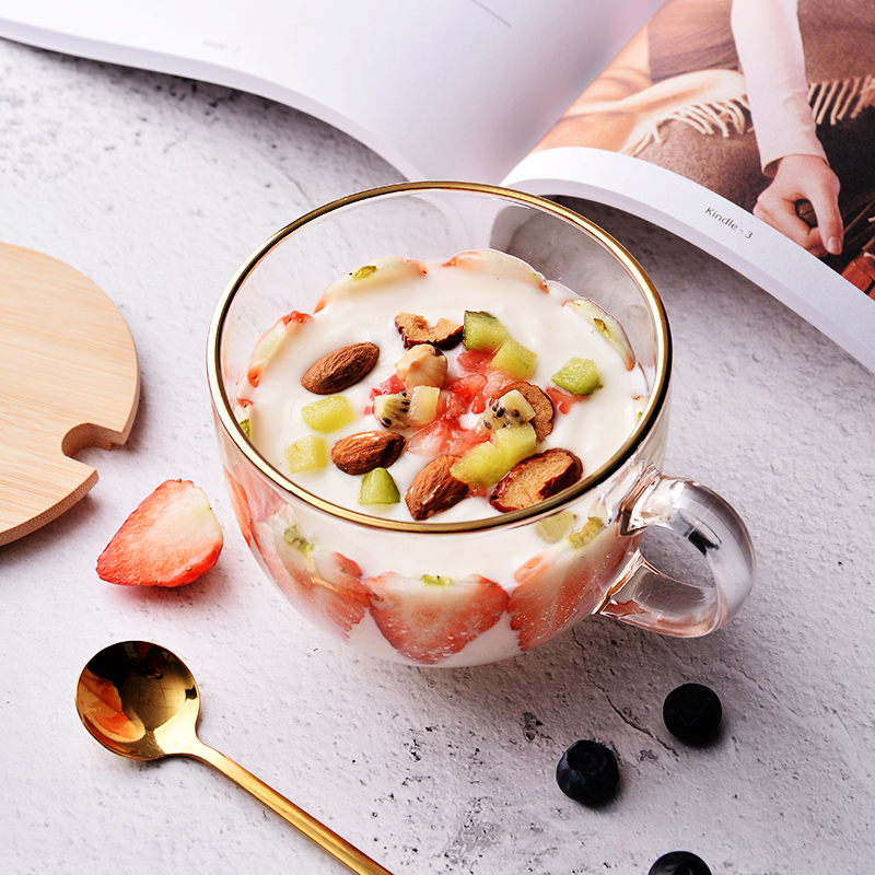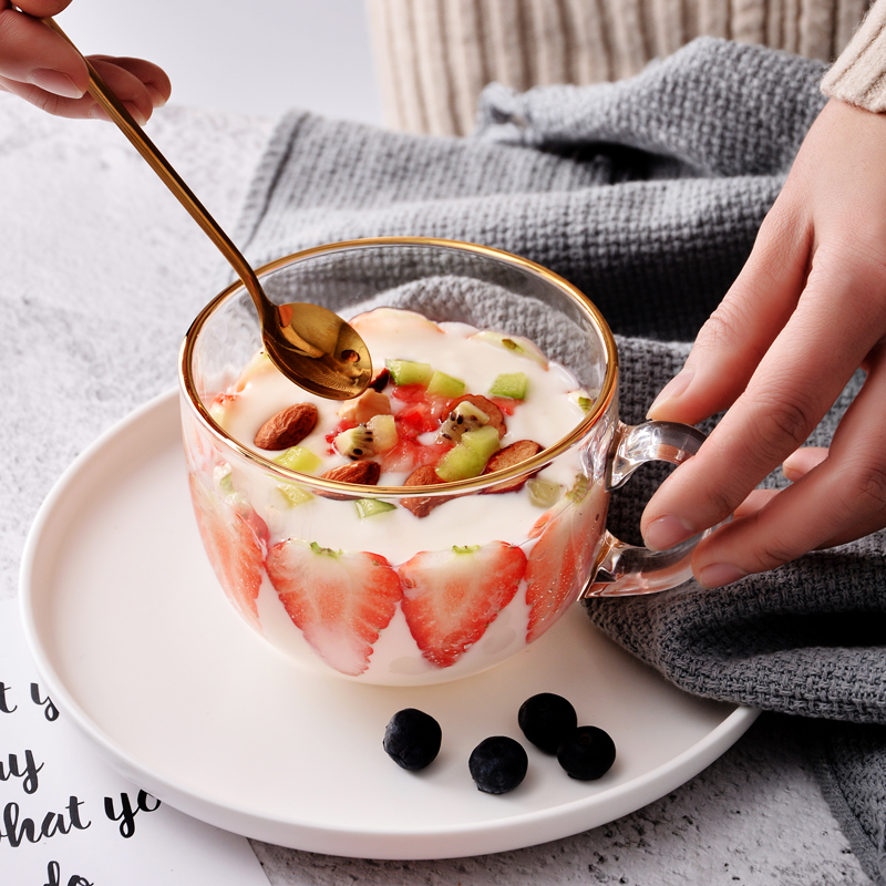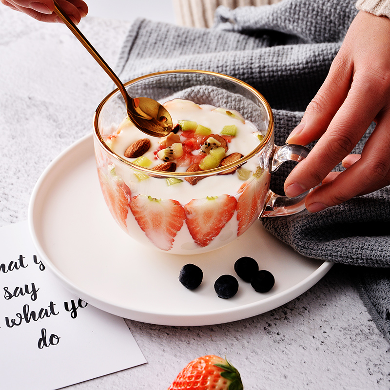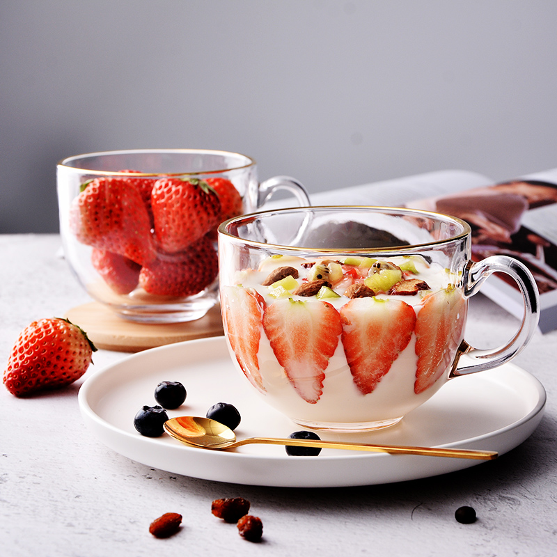 Large Capacity Phnom Penh Breakfast Cup Glass Mark Cup Oats Cup Home With Lid Spoon Can Microwave Milk Cereal Bowl