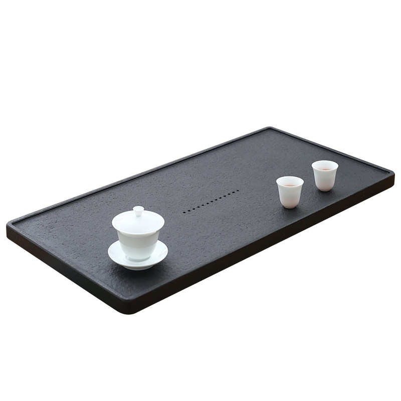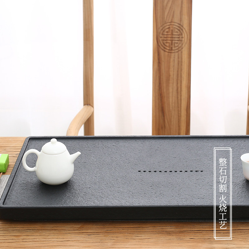 Black gold stone tea tray home stone living room natural stone whole piece simple drainage small tea table office black gold stone