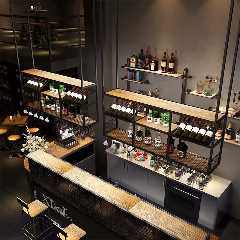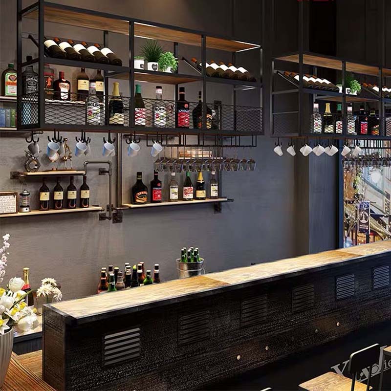 Bar hanging Wrought iron wine rack European wine glass rack Upside down restaurant decoration goblet rack Suspended ceiling shelf