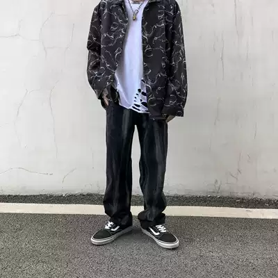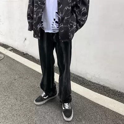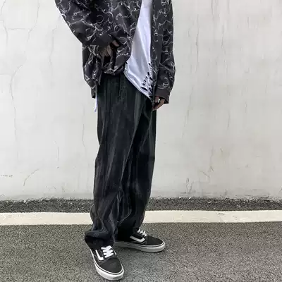 oldschool American Jeans Tide Brand Street High Street Tie-Dyeing Wash Loose Straight Wide Leg Daddy Pants Men