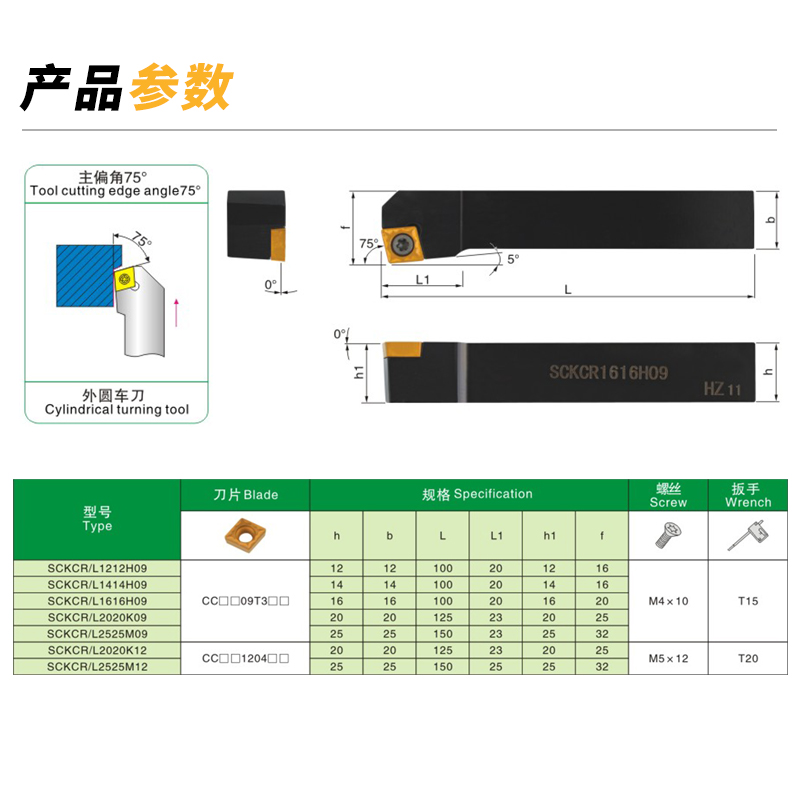 CNC knife knife lathe tool 75 degree blunt angle SCKCR1616 2020 25M09 end face machining
