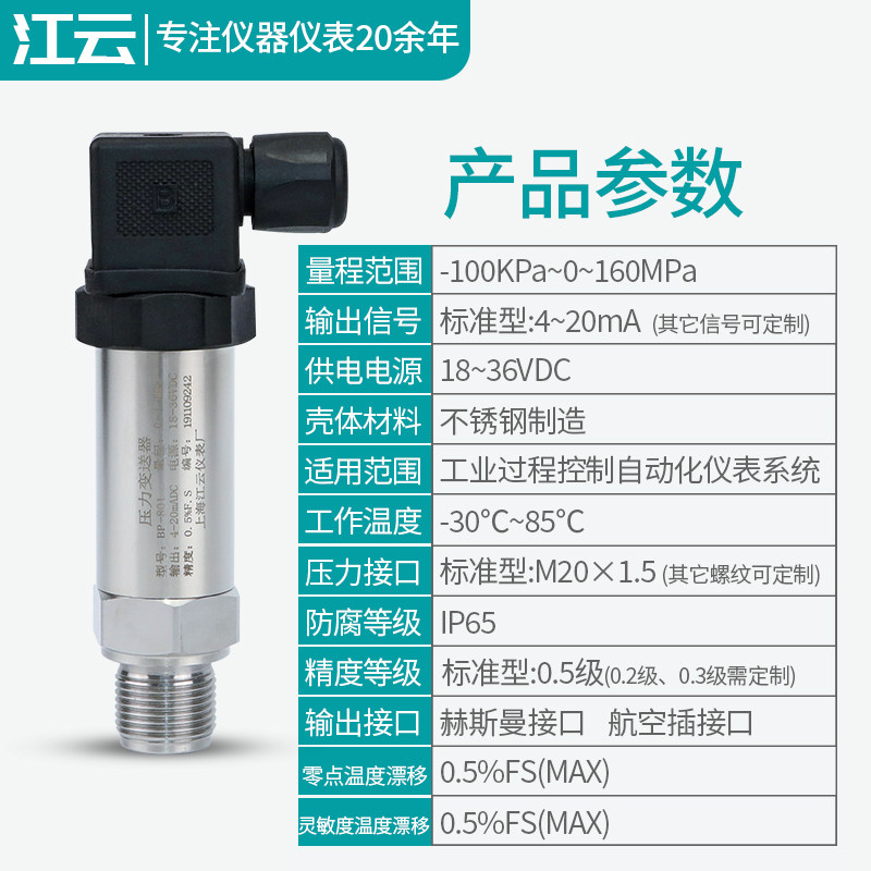 Constant pressure water supply pressure sensor water pressure diffusion silicon high precision transmitter 4-20mA pneumatic hydraulic 1.6MPa