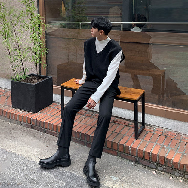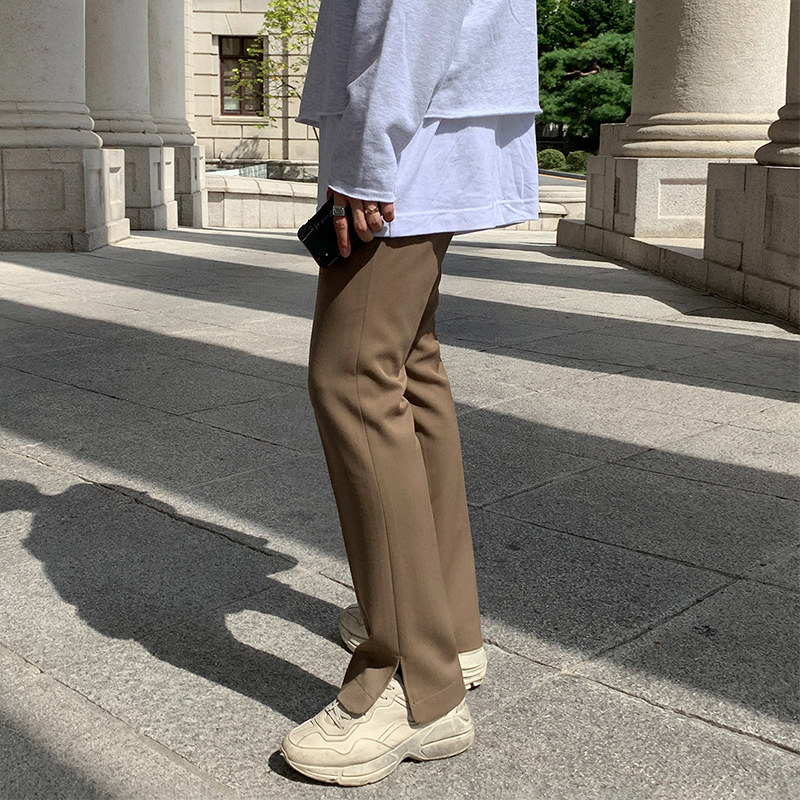 Men's Personality Open Fork Small Western Pants 2022 Spring Autumn New Korean Version Loose Straight Silo Western Dress Pants Casual Trend Long Pants
