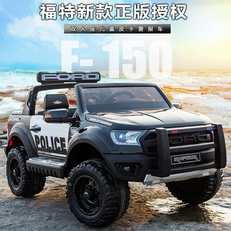 Extra Large Ford Kids Electric Car 4WD RC Off-road Pickup Car Dual Seat 110 Toy Police Car Seatable