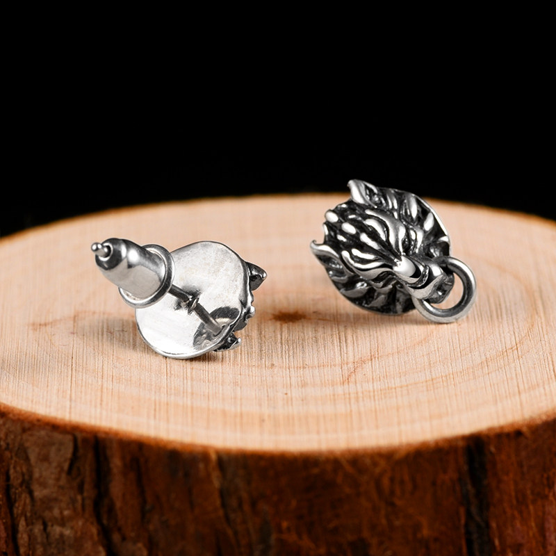 Rotai Old Silversmith 925 Silver Men's Ear Nail Single Only Tide Male Ear Pin Bully Wolf Head Ear Decoration Taysilver Retro Trinket
