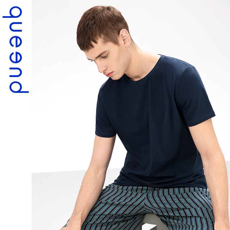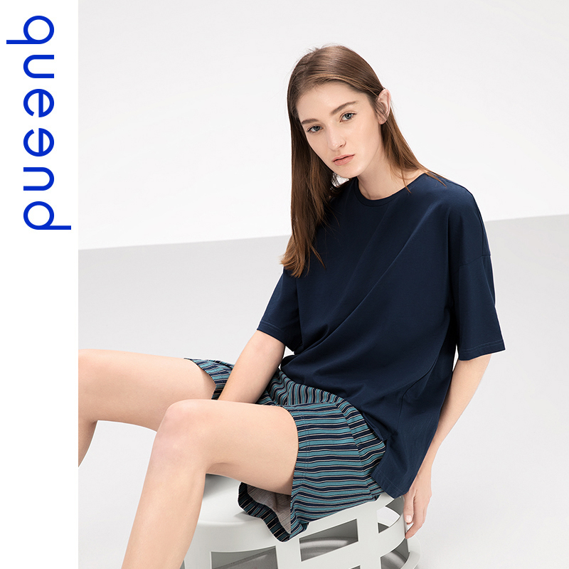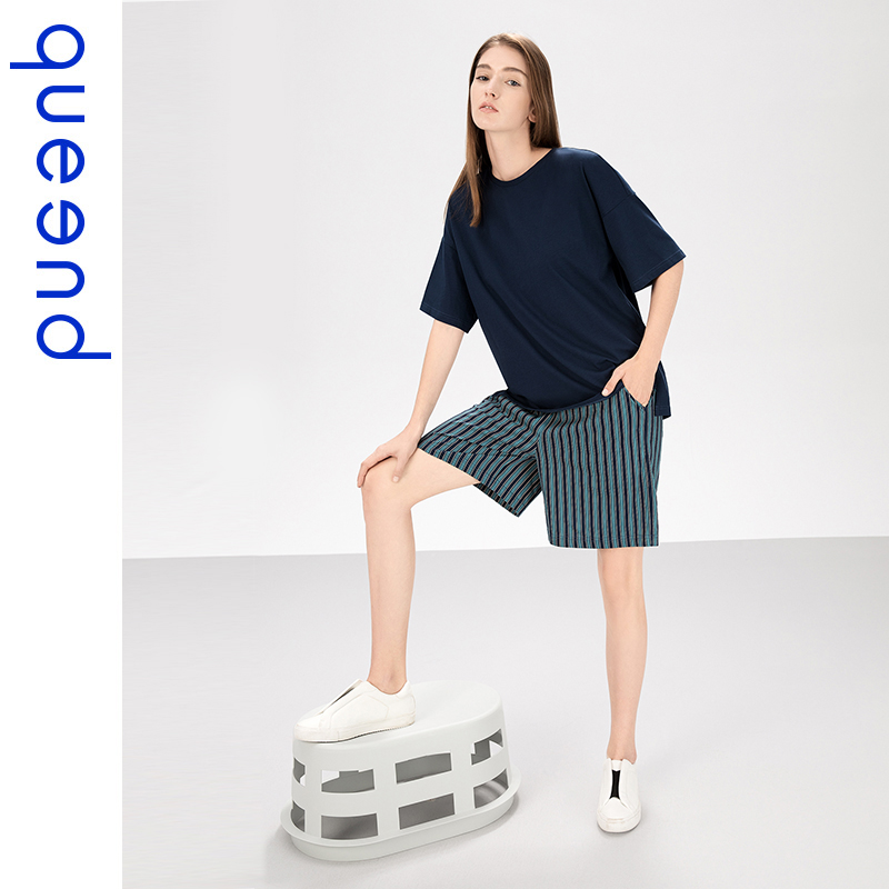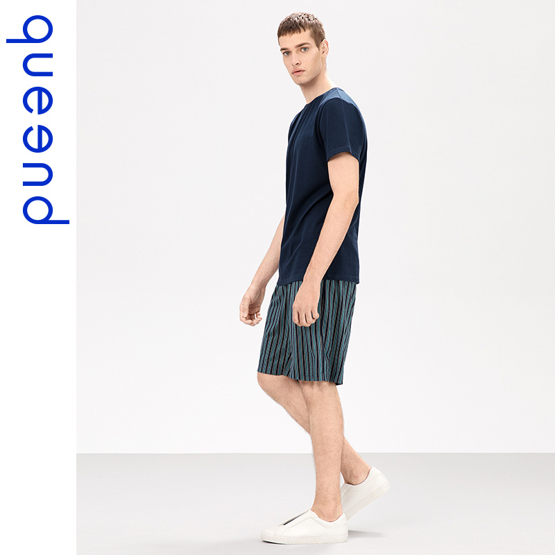 Chundo couple pajamas women's summer thin cotton striped short sleeve suit cotton home wear men's casual can go out
