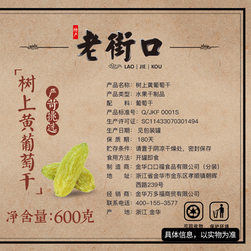 Laojiekou seedless green raisin 600g canned New goods no additives no wash ready-to-eat Xinjiang specialties non-bulk