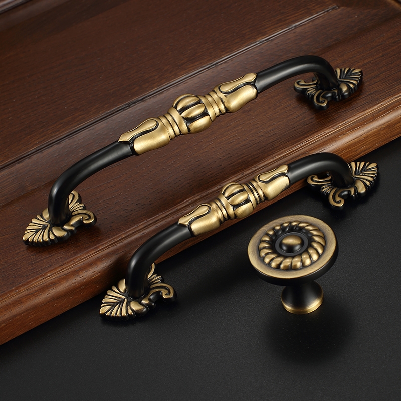 New Chinese Cabinet Door Handle Black Gold Pure Copper Integral Cabinet Drawer Wardrobe Door Handle Eurostyle Full Copper Small Handle Single Hole