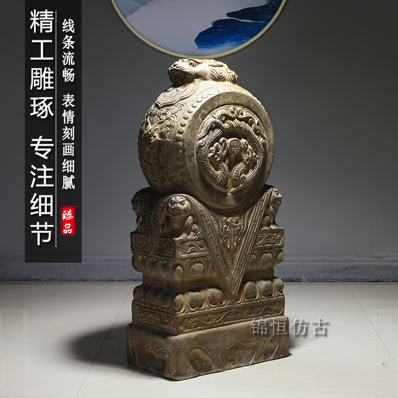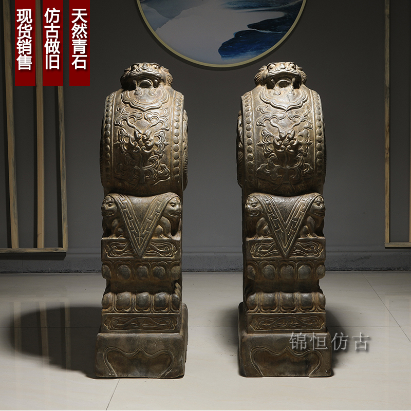 Door pier drum stone a pair of home hotel courtyard door decoration ornaments antique stone lion head door as stone drum