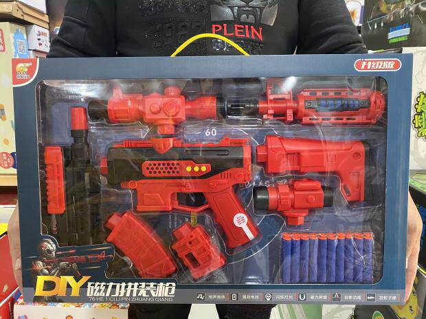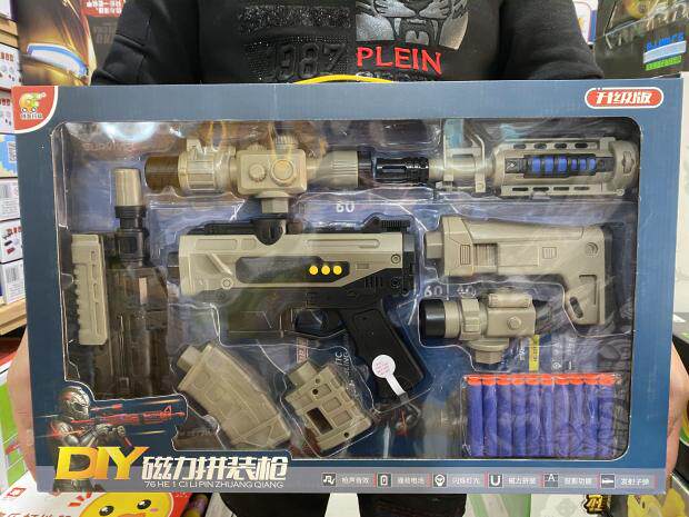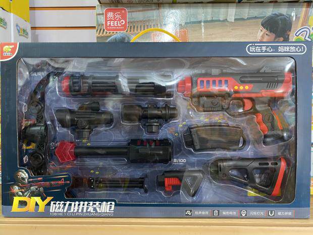Creatives toy DIY magnetic assembly gun gun sound effect scintillating light Magnetic assembly AK Gunfire Light Gun Boy-Taobao