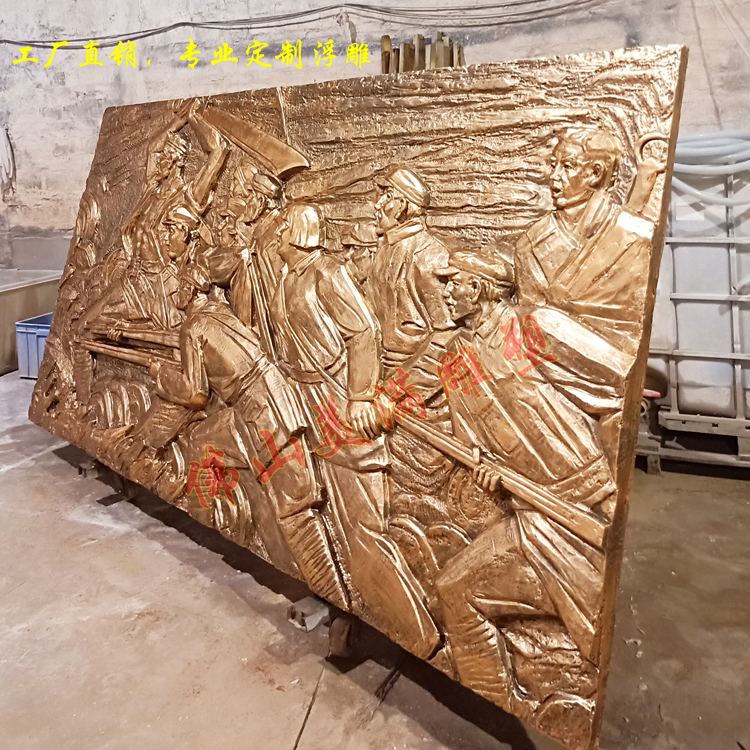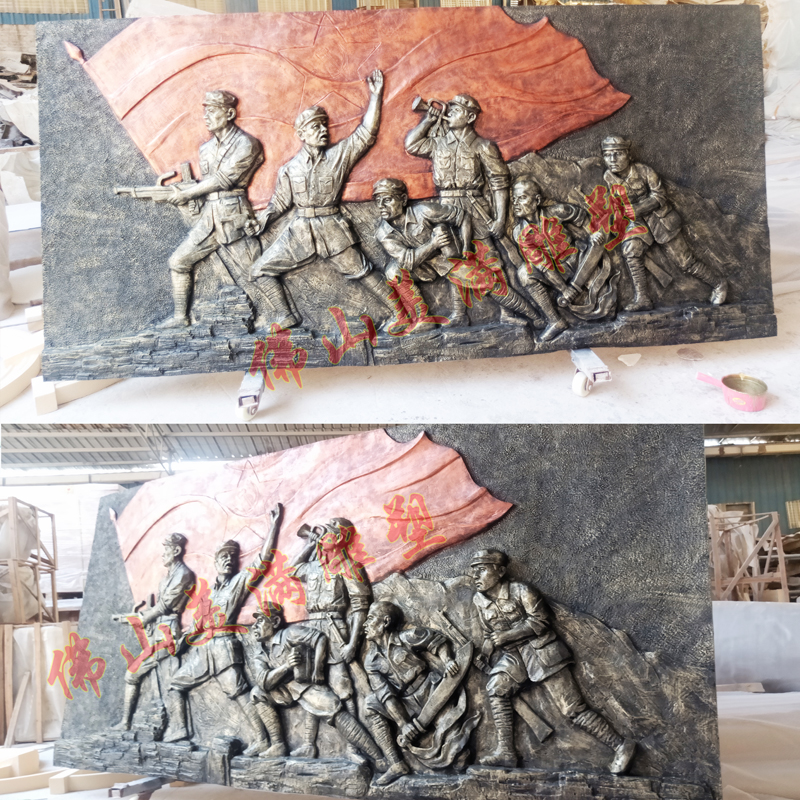 FRP imitation copper relief wall Red theme Traditional Chinese medicine culture pavilion Campus Corporate culture Sandstone relief customization