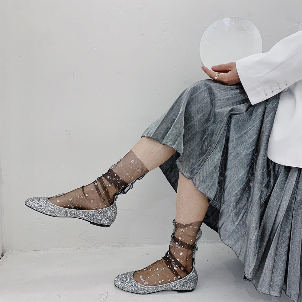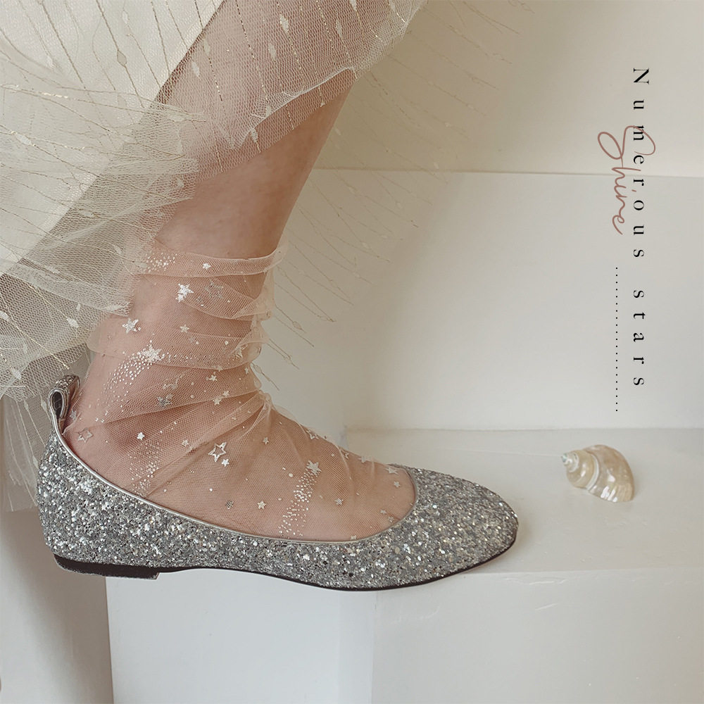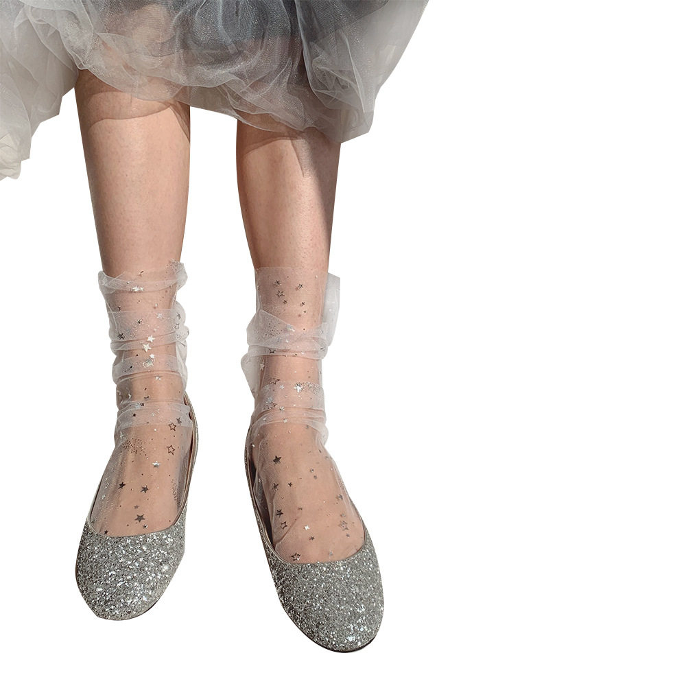 Day Series Transparent Stars Socks Spring Summer Sexy Ultra Slim Mesh Veil Hollowed-out Bubble Socks sins Sglitter stockings