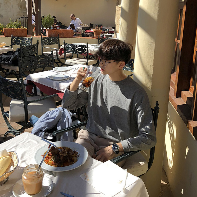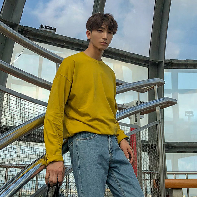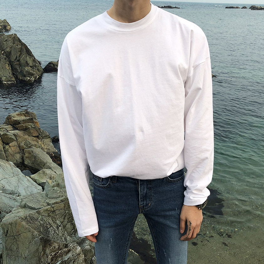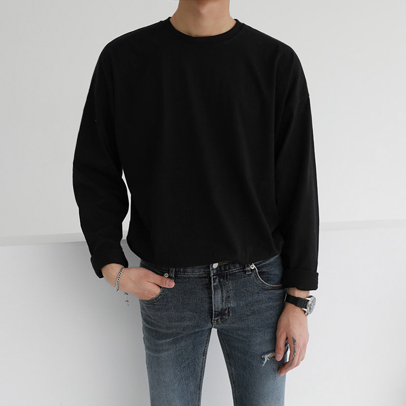Men's long sleeves T-shirt Spring and autumn money trendy Korean version men's clothing Ins pure color round collar thick cotton T undershirt male blouse T-shirt