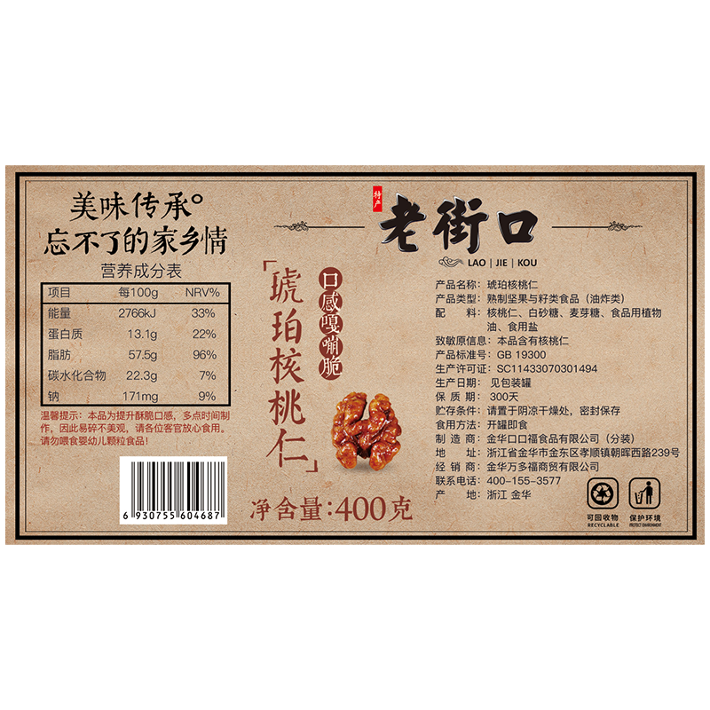 Old Street amber walnuts 400g canned new cooked paper skin walnuts Pecan nuts pregnant snacks