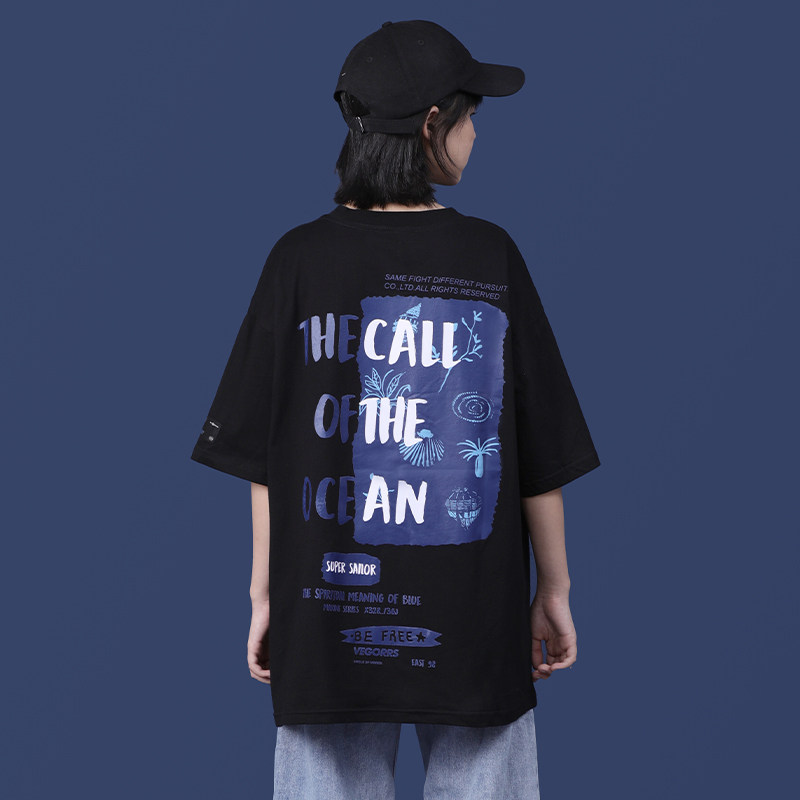 2022 new student sleeve T-shirt female ins tide brand loose national tide short European and American street oversize American coat