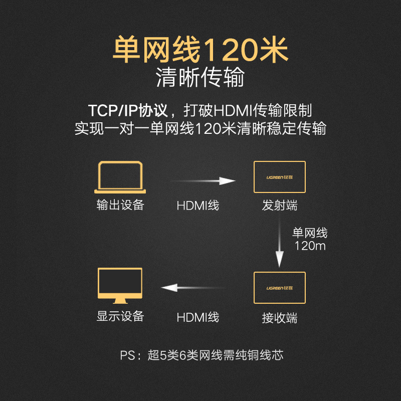 Green United Hdmi Extension Instrumental Network Route Network Junction Transfer Wearing Wall 50100120 m rj45 HD 1080P