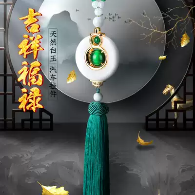 Car pendant Car high-end natural white jade pendant men and women safe and secure jewelry car rear mirror pendant