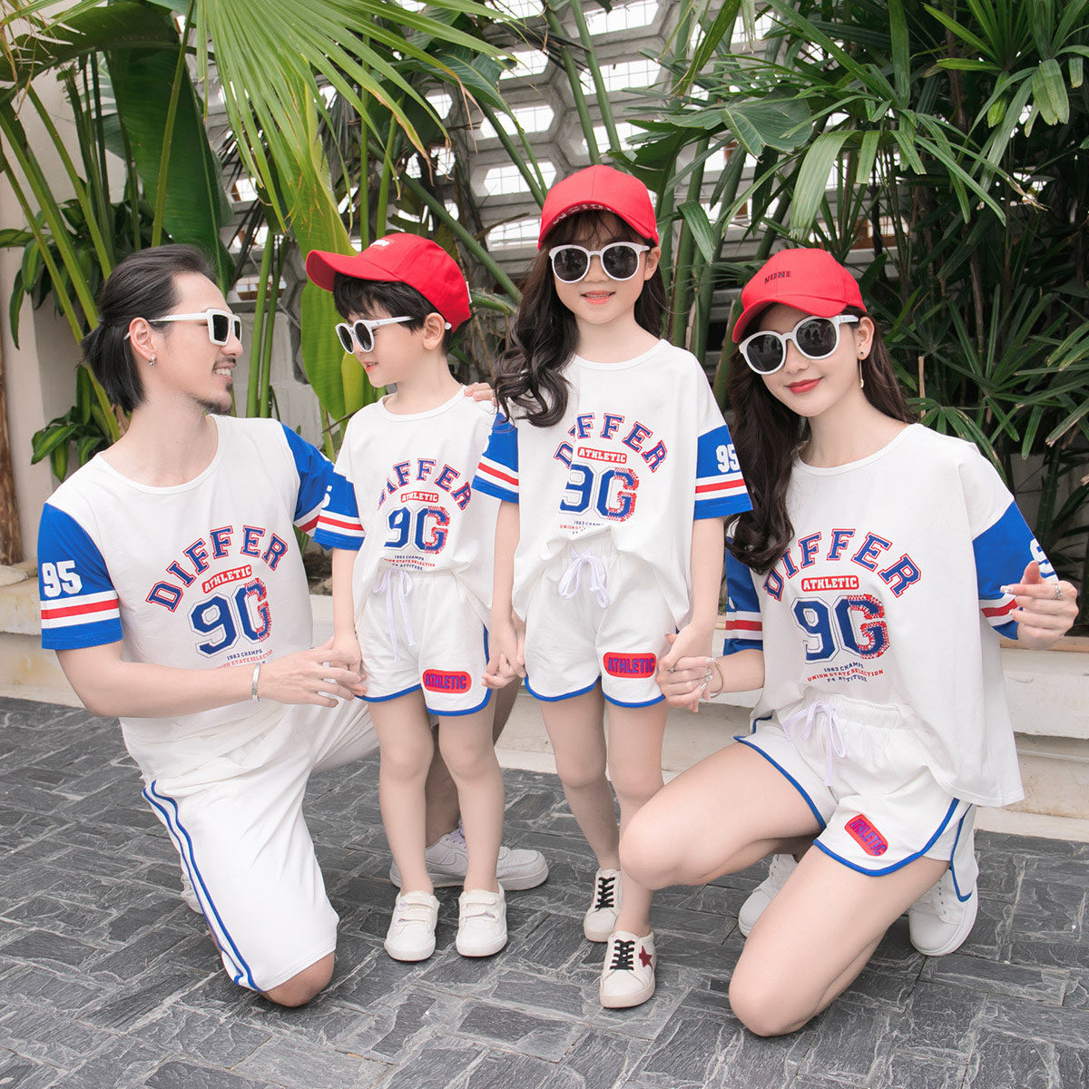 Parent-child wear 2022 summer thin net red mother-child mother-daughter wear Douyin Western style family of three and four sports suits