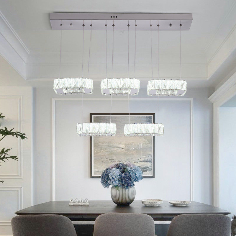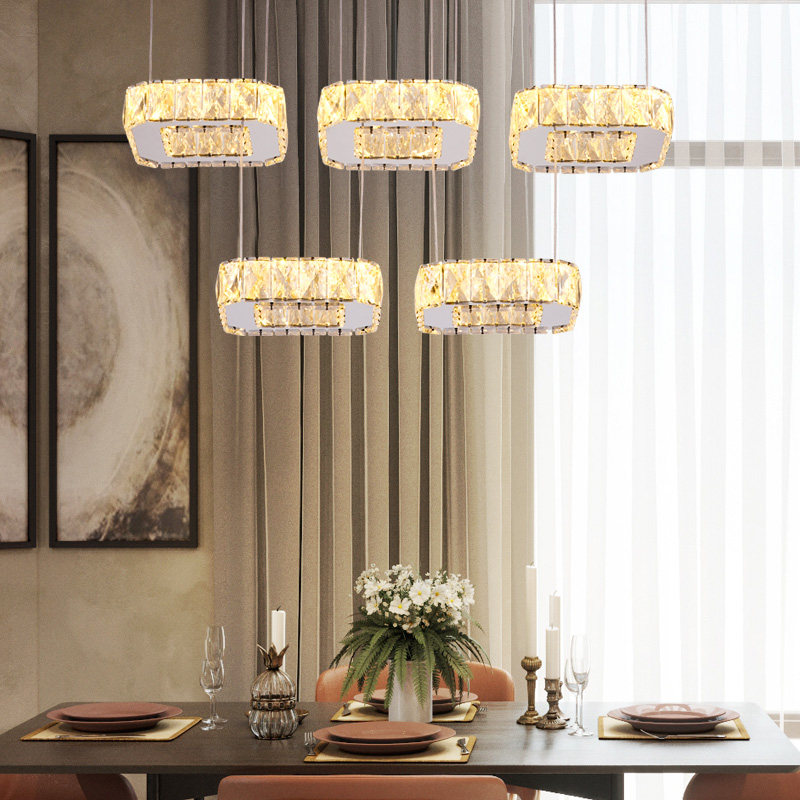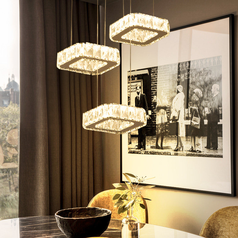 LED modern minimalist light luxury crystal chandelier dining room bar dining room three creative square lamps