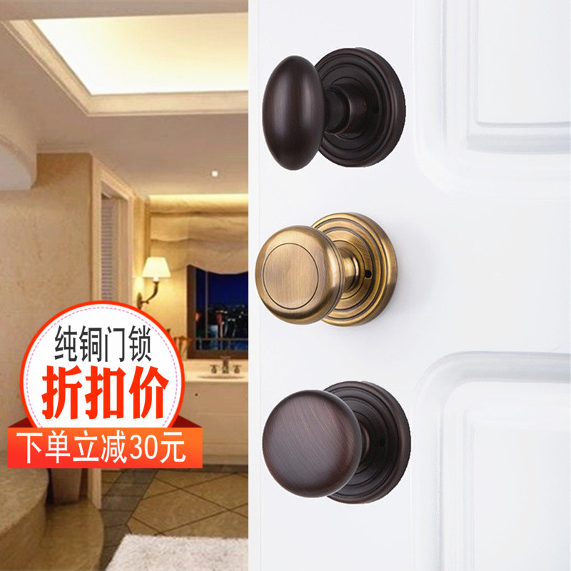 Pure copper spherical lock mute universal black bedroom promotional wooden door handle home improvement room door lock all copper indoor lock