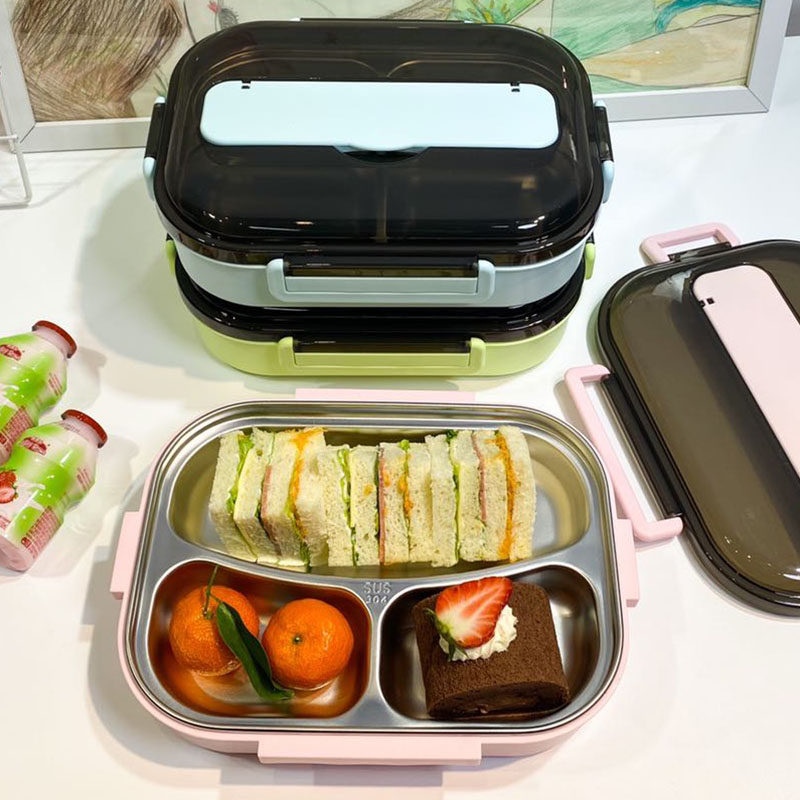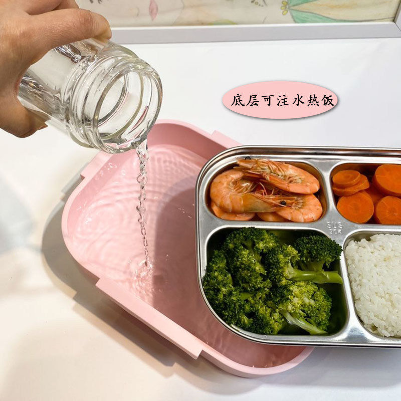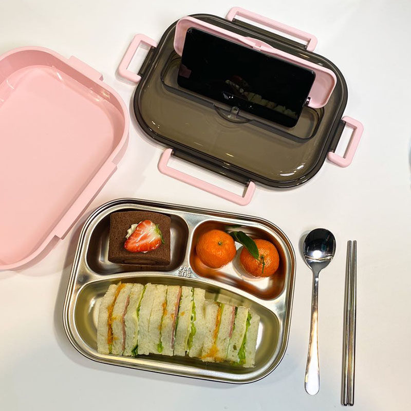 South Korea Separated Stainless Steel Lunch Box Canteen Lunch Box Microwave Oven Heating Students Bring Cover To Work Group With Dinner Dinner Plate