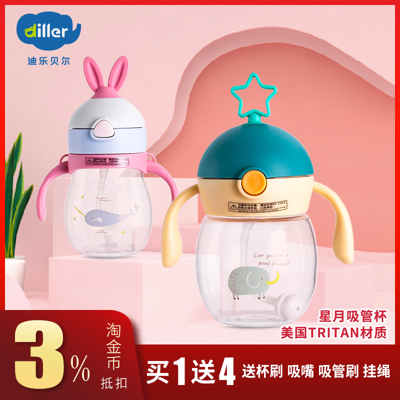 Dilobel Children's straw water glasses Drinking Cups Boys Girls Baby Children Straws With Handle-Style Kettle