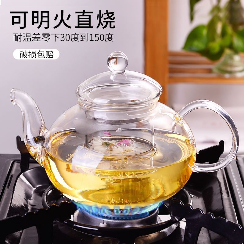 Glass teapot home High temperature resistant English-style afternoon flower tea fruit pot suit thickened candle Ming fire heating tea set-Taobao