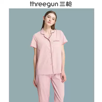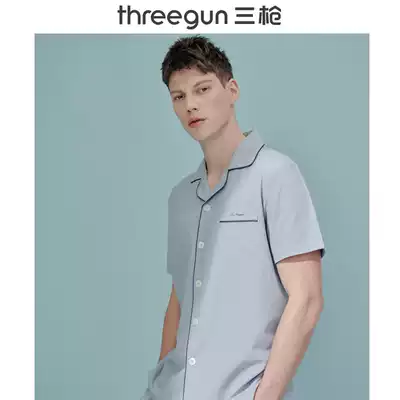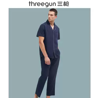 Three gun pajamas men's and women's spring and summer new products dense cotton lapel placket couple home clothes short-sleeved trousers fashion temperament