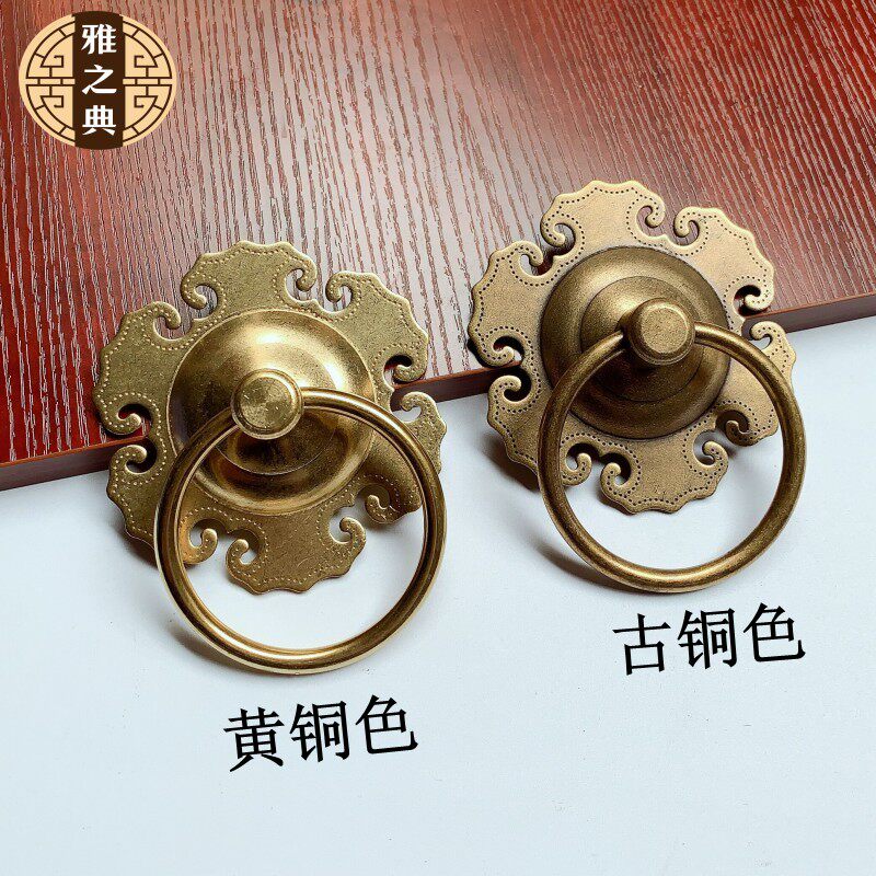 Chinese imitation antique gate brass door cymbals pure bronze vintage old fashioned pull ring for loading door ring pull-ring Ruyi Circle handle-Taobao