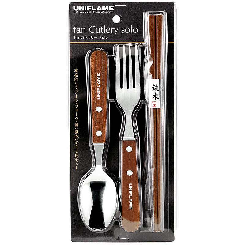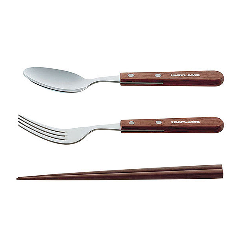 Japanese original imported UNIFLAME outdoor camping portable retro iron wood handle fork chopsticks spoon tableware set