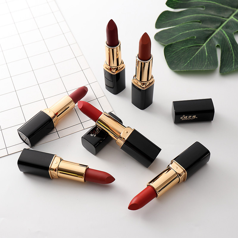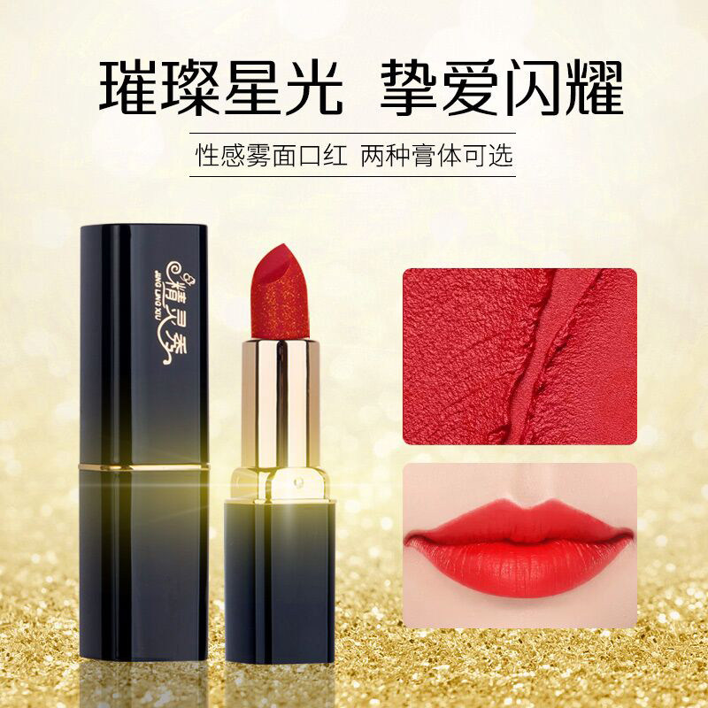 Glitter with red velvet red velvety foggy face matt not easy to drop color display white pumpkin brick red tomato color lipstick