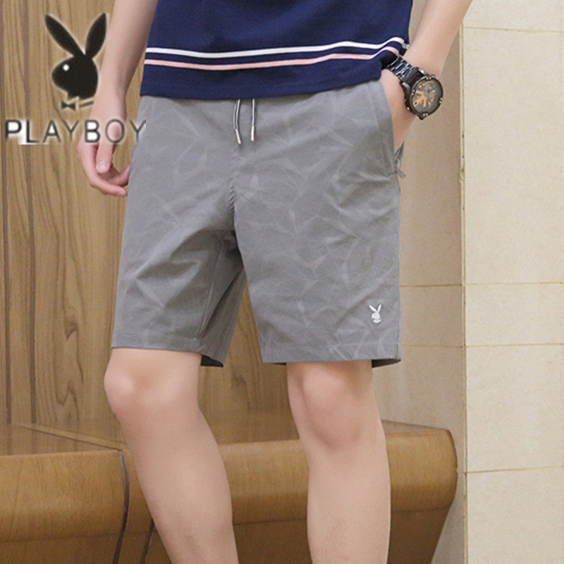 Playboy Summer Drawstring Beach Pants Men's Quick Dry Five Points Pants Casual Five Points Sport Shorts Men Pull Chain Pocket