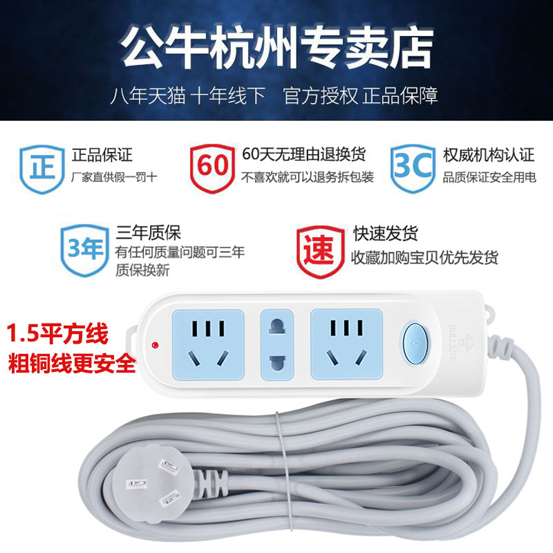 Bull socket long line plug board with wire porous household multi-function 5 m 10 extended extra long drag terminal board