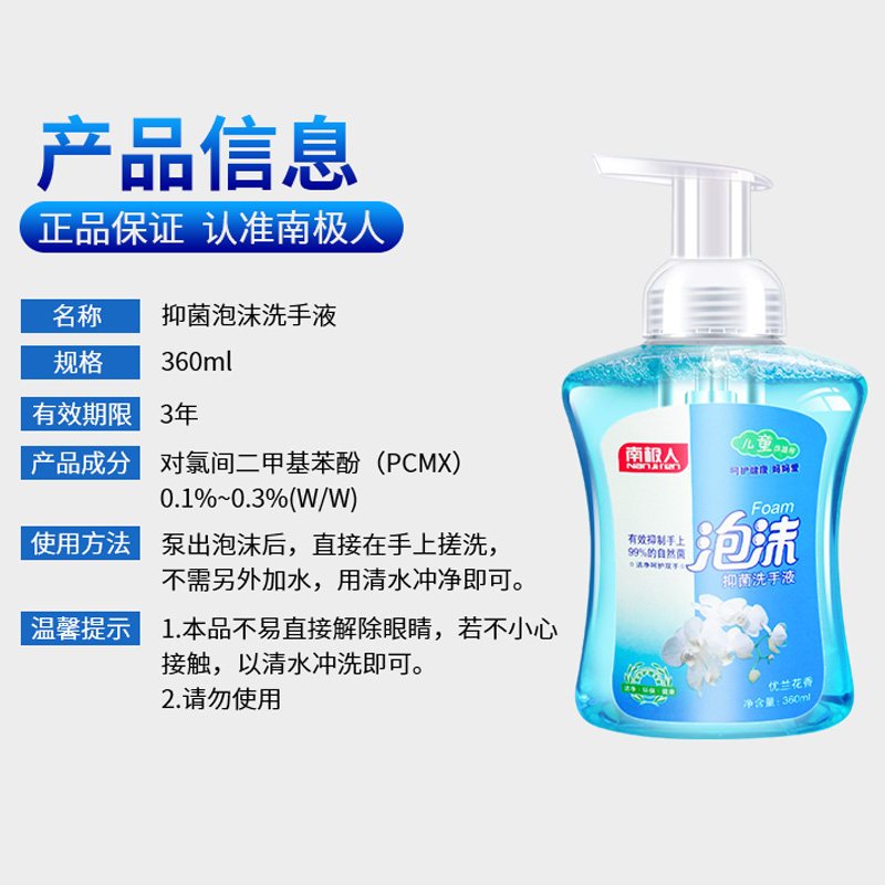 Antarctic antibacterial hand sanitizer Foam type household hand washing cleaning children sterilization disinfection Moisturizing Gentle and non-irritating