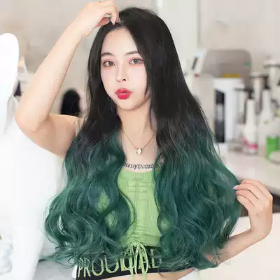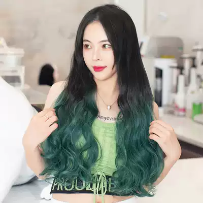 JX-968 V-shaped Long Curly Hair-Black Graded Malachite Green