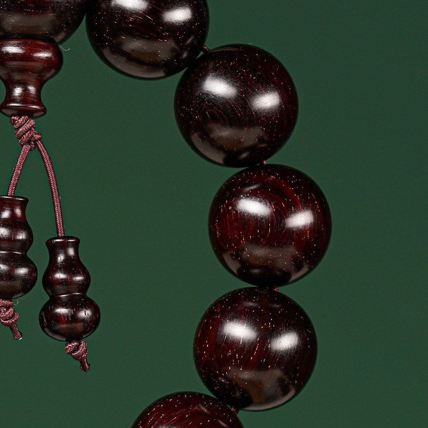 Half-wrapped pulp Indian leaflet red sandalwood old material nearly full gold star 18mm men's Buddha bead bracelet f349