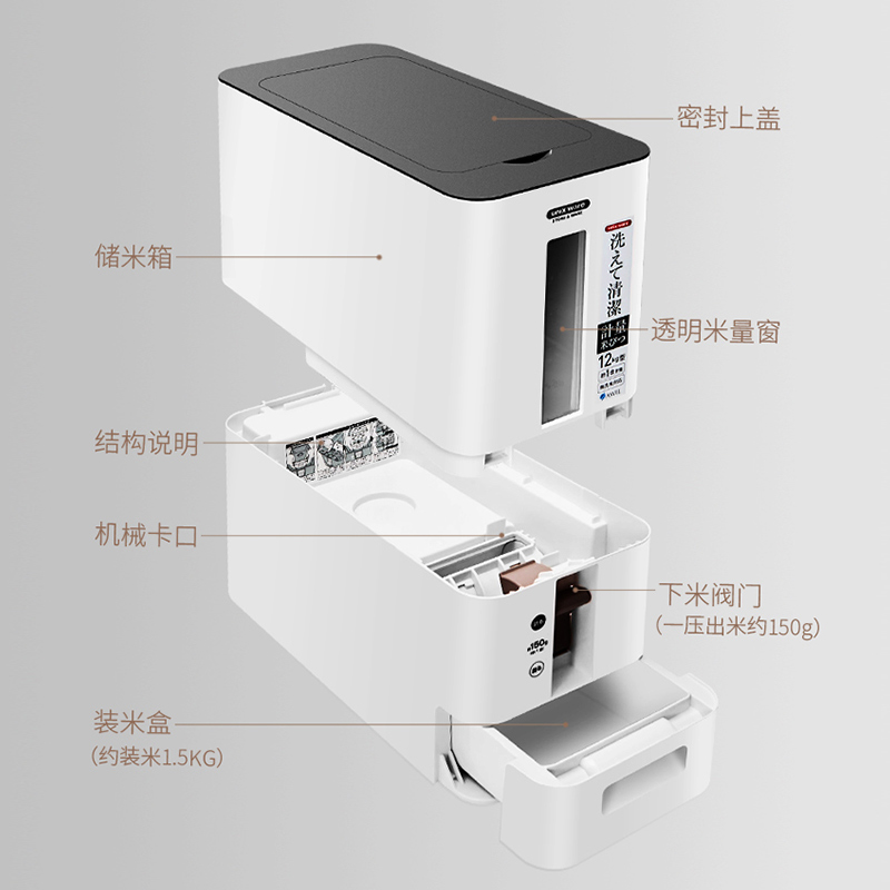 Japan's ASVEL rice bucket household large insect-proof moisture-proof seal 10 jins 20 jins rice cylinder automatically out of rice into rice box