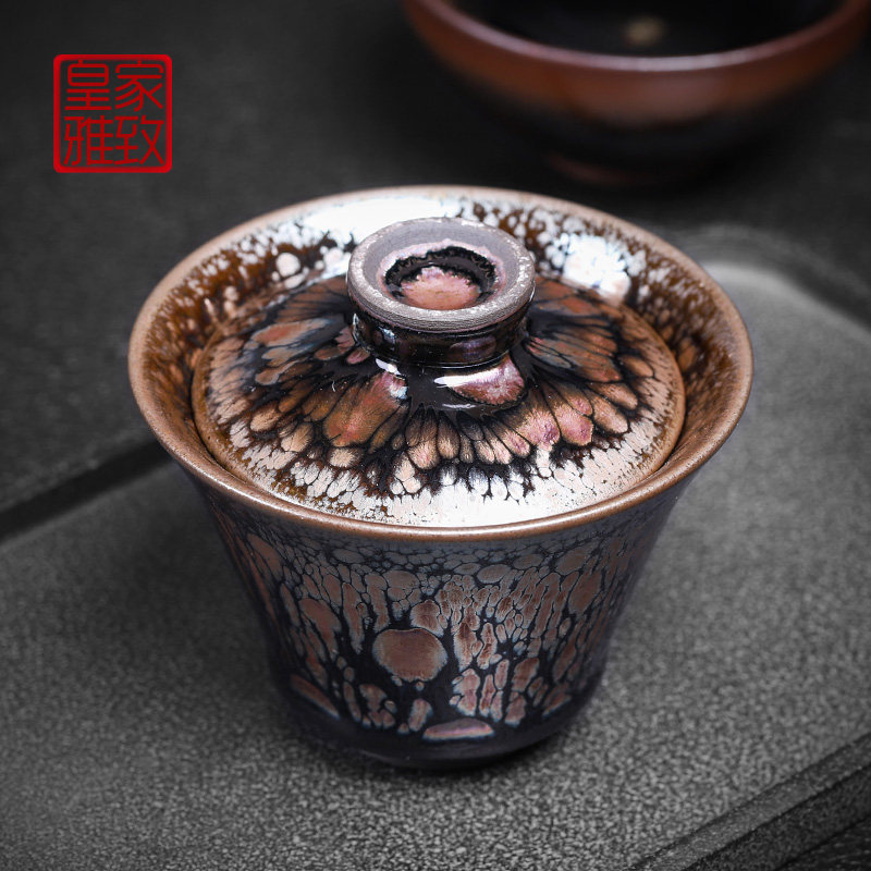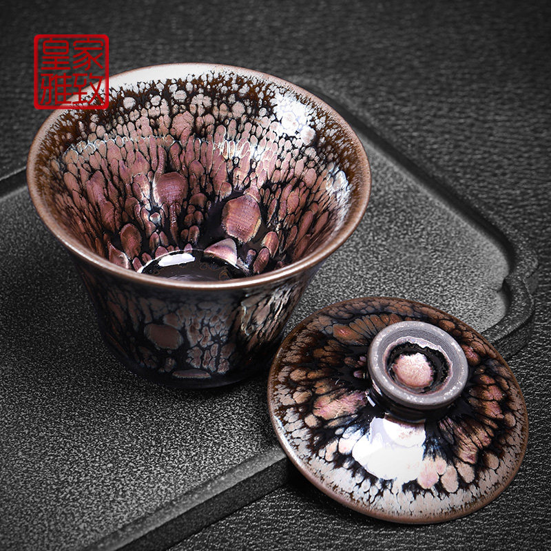 Original mineral glaze Golden Autumn Gaiwan Jian Kiln Famous Yao change oil drops Jianzhan tea bowl Small capacity ceramic iron tire three-year bowl